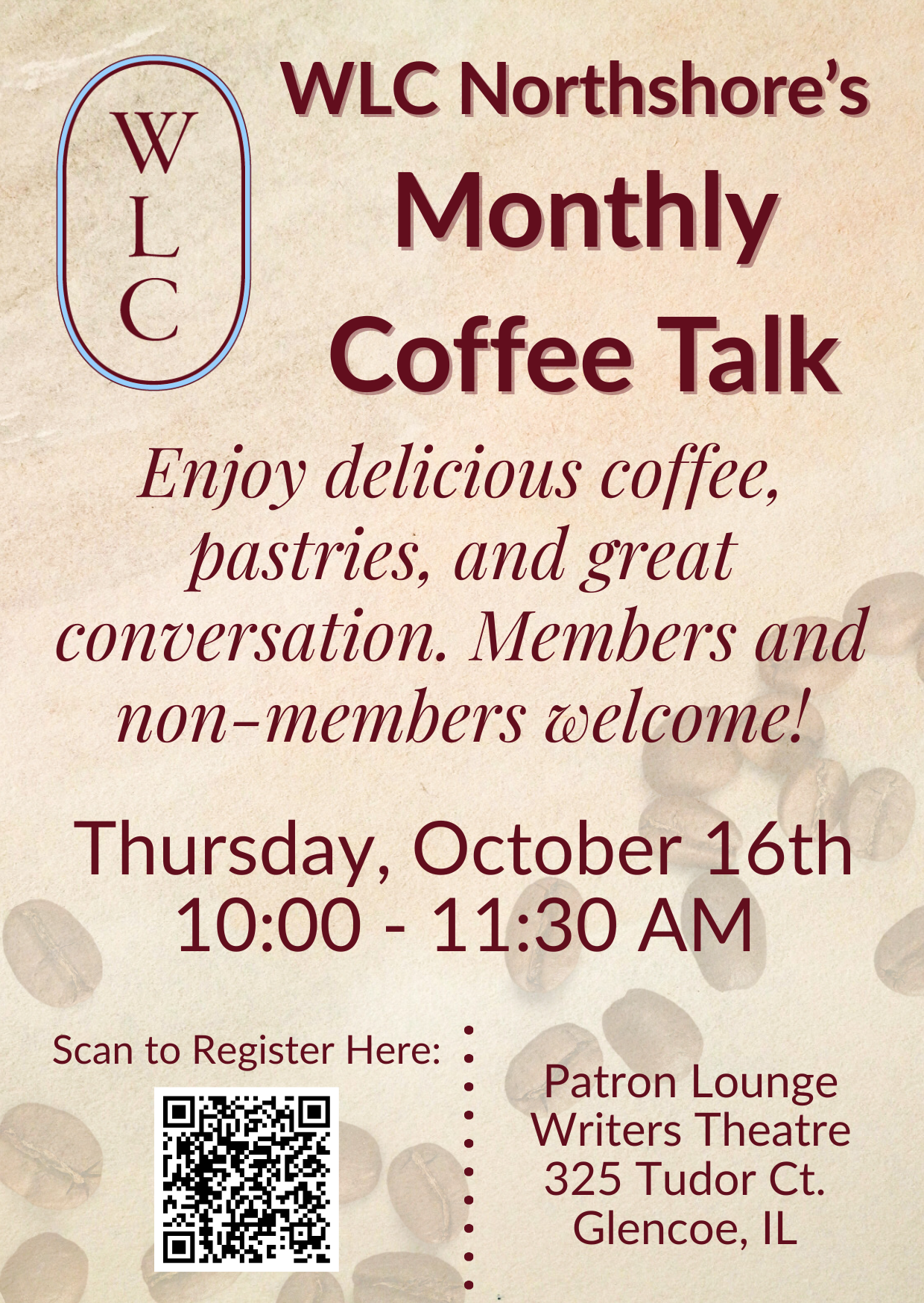 Join us for coffee and good conversation in the Patron Lounge at Writers Theatre.